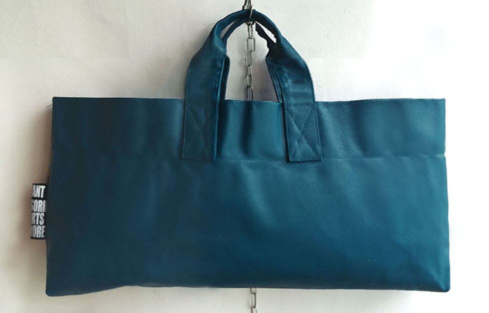 ビニール感のある塗装により、多少の防水効果もございます。水気で色落ちする事はなく、生地のハリもお使い頂くうちに徐々に馴染んまいります。